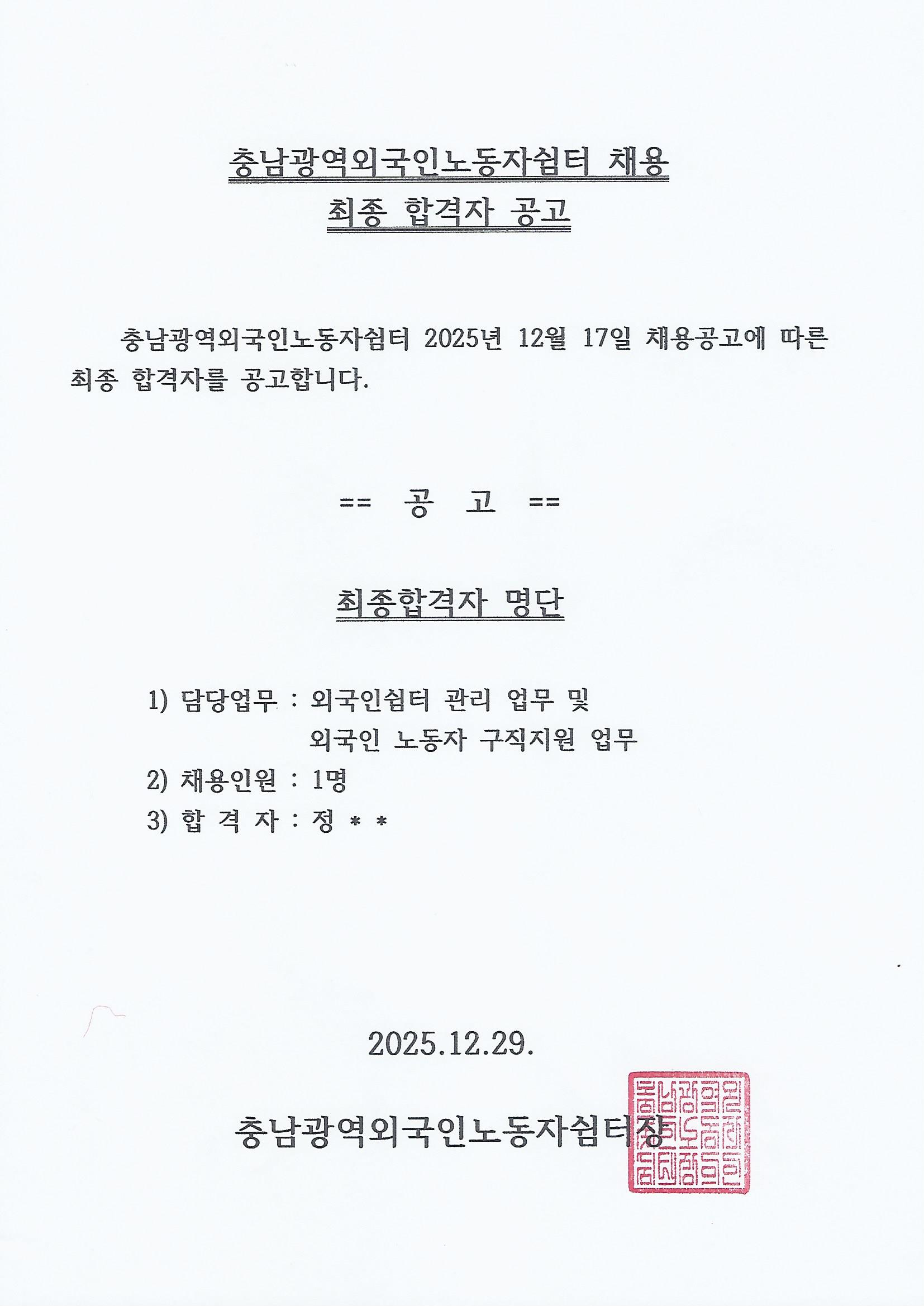 Ãæ³²±¤¿ª¿Ü±¹Àγ뵿ÀÚ½°ÅÍ Ã¤¿ë È®Á¤ °ø°í