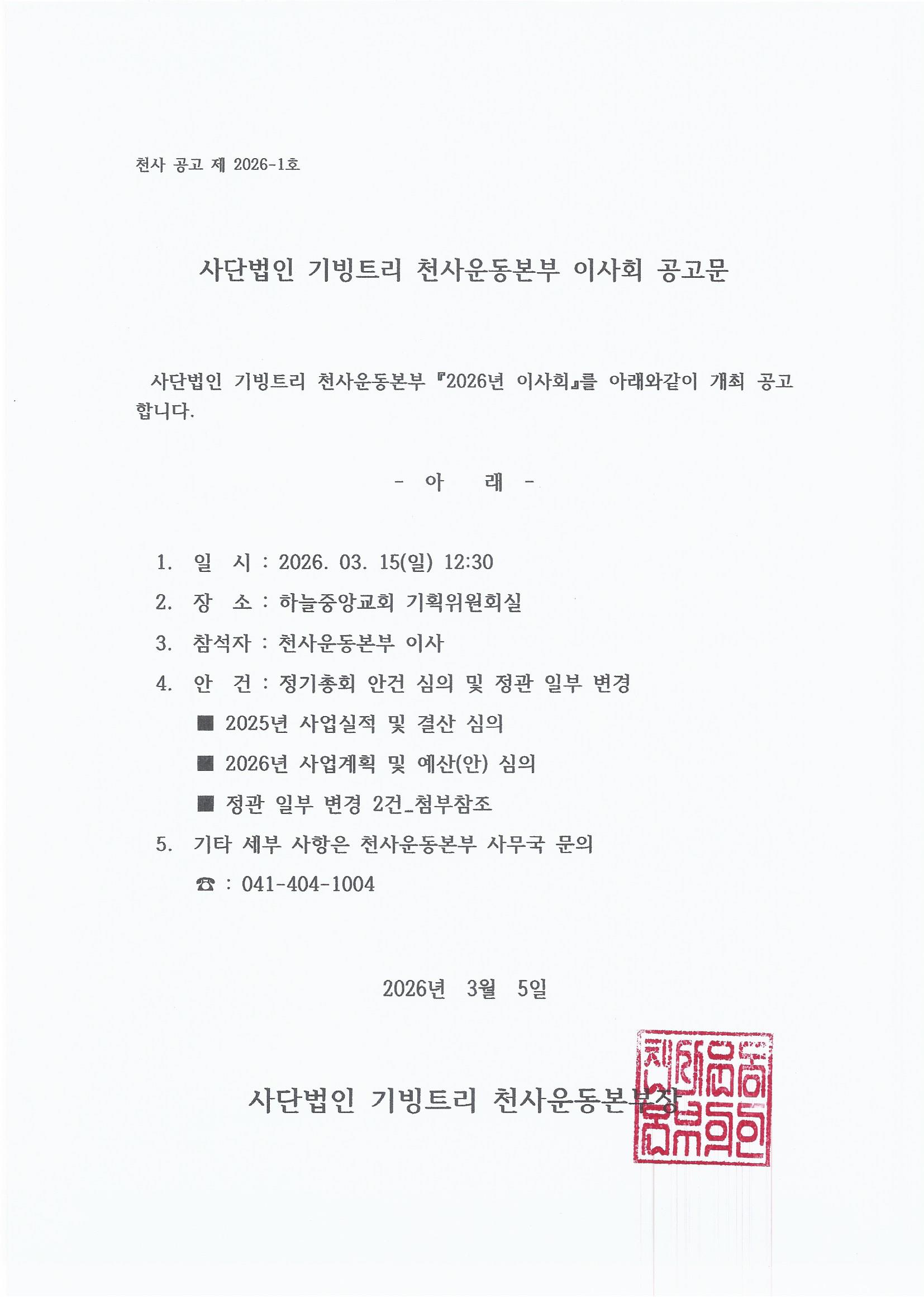 2026³â ÀÌ»çȸ °ø°í