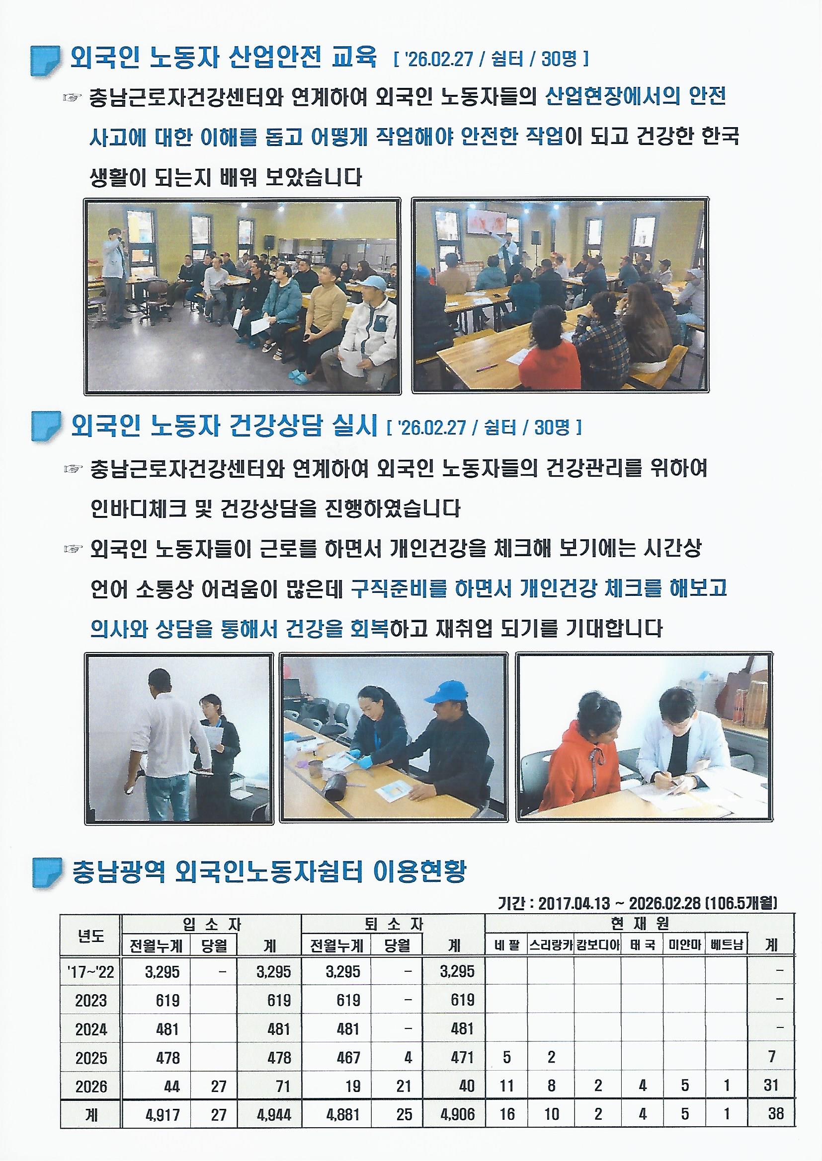 ²ÉÀÌ ÇÇ´Â 3¿ùÀÌ ´Ù°¡¿À°í »óÄèÇÑ ¸¶À½À¸·Î ¿Ü±¹ÀÎ ³ëµ¿ÀÚµéÀÌ ÀÏÀÚ¸®¸¦ ã¾Æ ±¸Á÷ÇØ ³ª°¡°í ÀÖ½À´Ï´Ù ¾ÈÀüÇÏ°Ô ÀÏÇÏ°í °Ç°Çϱ⸦ ¼Ò¸ÁÇÕ´Ï´Ù ¿Ü±¹ÀÎ ³ëµ¿ÀÚµéÀ» À§ÇÑ °ü½É°ú °Ý·Á¿¡ °¨»çµå¸³´Ï´Ù °Ç°Çϰí ÇູÇÑ 3¿ù µÇ¼¼¿ä